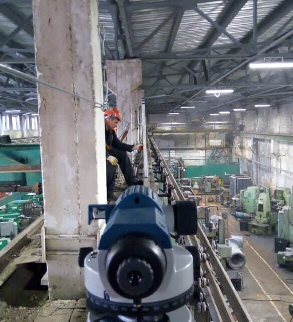 Нивелировка, рихтовка путей мостовых, козловых кранов.